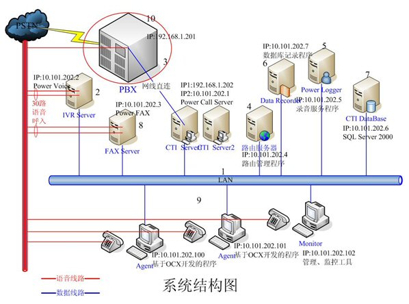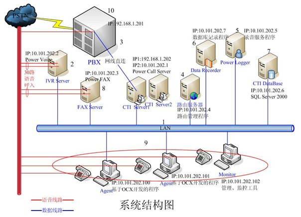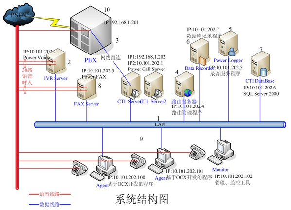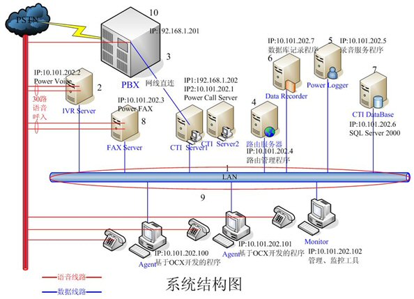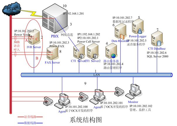 - IVR Server和FAX Server采用高品質(zhì)的工控機(jī),配置和軟件環(huán)境基本一樣。每臺機(jī)器均有30路語音接入,分別裝有一套Power
