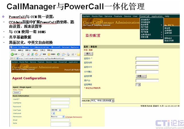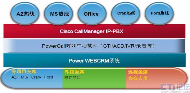 系統(tǒng)采用CISCO CallManager IP-PBX作為語(yǔ)音平臺(tái),PCS提供全套軟件,包括:CTI、排隊(duì)、IP-IVR、錄音和CRM,對(duì)MicroCall外包呼叫中心的各項(xiàng)需求都給出了滿意的解決方案。
