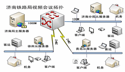 濟(jì)南鐵路局規(guī)模龐大,機(jī)構(gòu)復(fù)雜,由于鐵路的特殊性,一個(gè)部門(mén)或機(jī)構(gòu)往往分布在鐵路沿線的數(shù)十個(gè)站段。因此,溝通和會(huì)議的模式也是多種多樣的,會(huì)議使用單位較多而且頻繁,這就對(duì)網(wǎng)絡(luò)視頻會(huì)議系統(tǒng)提出了很高的要求,即能滿足當(dāng)?shù)氐臅?huì)議,又要能夠滿足跨區(qū)域的會(huì)議。
