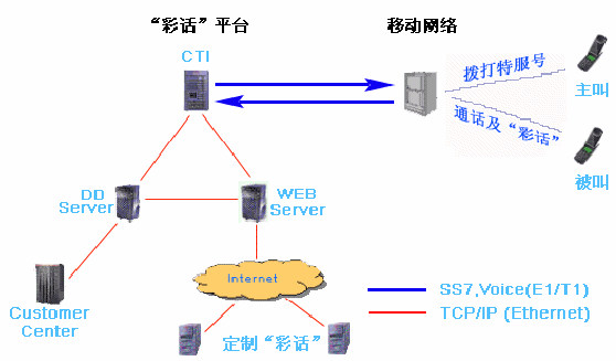 IVR:提供各種"彩話"、 用戶通過撥打IVR定制"彩話"、 通話過程中,用戶可進(jìn)入IVR點(diǎn)播"彩話"
