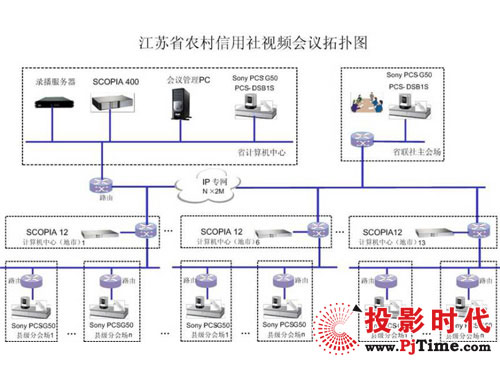 本次設(shè)計方案中,上海索高通過對江蘇農(nóng)信社的全省分布和各地實際需求,提供72套Sony PCS-G50視頻會議終端,IP網(wǎng)絡(luò)支持最大4Mbps的視頻傳輸速率,為用戶提供4CIF的高質(zhì)量視頻效果,配合H.264的強大功能一起獲得更高的媒體處理能力。通過Radvision
