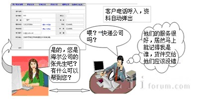 客戶(hù)來(lái)電,根據(jù)號(hào)碼,客戶(hù)資料自動(dòng)彈出,客服人員第一時(shí)間報(bào)出客戶(hù)姓名,并對(duì)客戶(hù)情況馬上錄入數(shù)據(jù)庫(kù),動(dòng)態(tài)更新。讓客戶(hù)體會(huì)到獨(dú)特溫暖的服務(wù)。