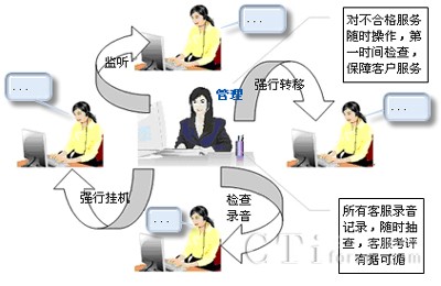 電話(huà)錄音,電話(huà)監(jiān)聽(tīng),強(qiáng)行轉(zhuǎn)接,讓您隨時(shí)控制或檢查客服情況,保證客服質(zhì)量穩(wěn)定。