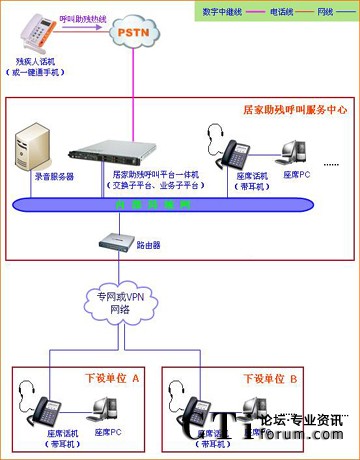居家助殘呼叫系統(tǒng)平臺的網(wǎng)絡架構(gòu)如圖所示: