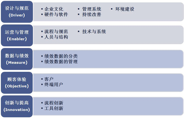 呼叫中心能力成熟度認證涉及設計與規(guī)范、運營與管理、數(shù)據(jù)與績效、顧客體驗、創(chuàng)新與提高5大類,14項評審指標以及若干個值得關(guān)注的管理項目。是一套完整的“客戶為中心”的績效管理工具。