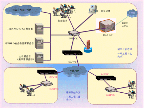 1. 由于福田汽車有限公司總部的領導每周都要和各地分公司進行幾次思想交流,所以要在北京總部建立一個電話會議中心。各地分公司的相關人員可以通過電話撥入會議中心或由總部撥打各地分公司電話邀請分公司相關人員來參加會議。