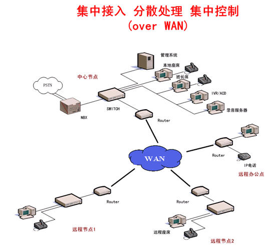 隨著用戶(hù)分支機(jī)構(gòu)的不斷發(fā)展壯大,建立一套完全基于IP網(wǎng)絡(luò)的分布式的呼叫中心系統(tǒng),正成為企業(yè)全面提升自身客戶(hù)服務(wù)質(zhì)量的一條重要途徑。在前幾年的呼叫中心建設(shè)熱潮過(guò)后,現(xiàn)在的市場(chǎng)越來(lái)越趨向于理性,目前的企業(yè)往往都處在轉(zhuǎn)變之中,如何最大限度地利用現(xiàn)有的網(wǎng)絡(luò)資源和已有的設(shè)備資源,如何以最低的投資成本獲得最有效的客戶(hù)服務(wù)手段才是企業(yè)的選擇根本。企業(yè)的需求決定了呼叫中心行業(yè)的發(fā)展方向,網(wǎng)絡(luò)化、分布化、經(jīng)濟(jì)化、完全基于IP的華為-3Com NBX呼叫中心平臺(tái)越來(lái)越受到企業(yè)的歡迎,已經(jīng)成為企業(yè)構(gòu)建IP分布式客戶(hù)服務(wù)系統(tǒng)的首選品牌。基于網(wǎng)絡(luò)化的NBX呼叫中心:
