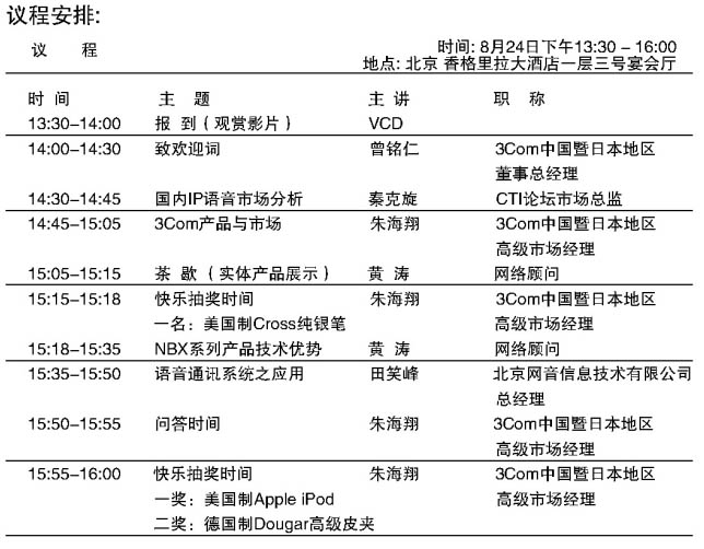 3Com NBX 語(yǔ)音通訊產(chǎn)品推廣會(huì)