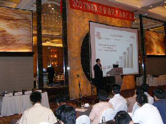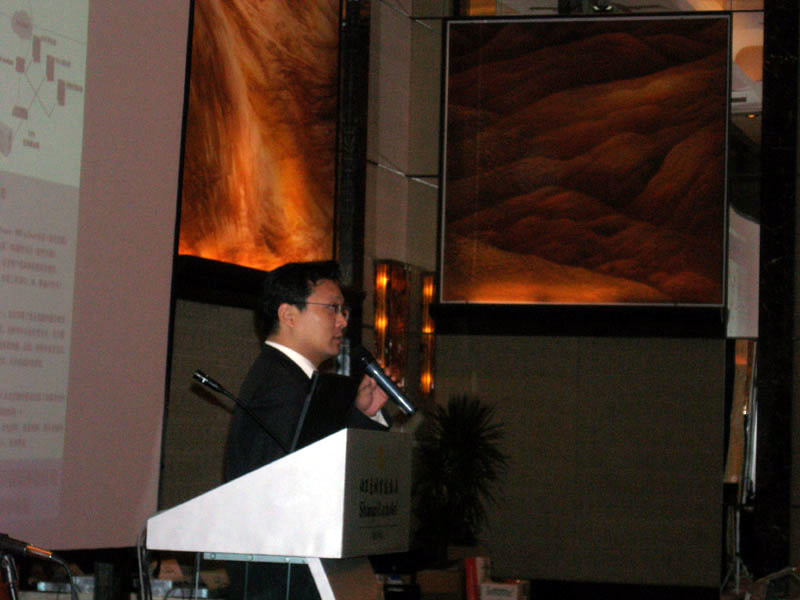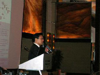 。。2005年8月24日,3Com NBX語(yǔ)音通訊產(chǎn)品推廣會(huì)于北京香格里拉大酒店成功舉辦。圖為3Com中國(guó)地區(qū)高級(jí)市場(chǎng)經(jīng)理朱海翔闡述3Com產(chǎn)品與市場(chǎng)(點(diǎn)擊察看大圖)