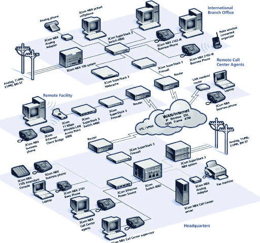 由于業(yè)務(wù)發(fā)展需要,公司屏棄了原有傳統(tǒng)PBX電話系統(tǒng),采用語(yǔ)音與數(shù)據(jù)融合技術(shù)的華為3com 網(wǎng)絡(luò)電話系統(tǒng)NBX,從而使企業(yè)間的通訊模式發(fā)生了革命性的改變。