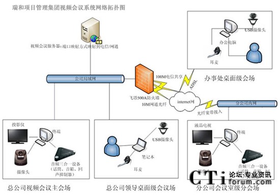 瑞和項目管理集團(tuán)網(wǎng)絡(luò)基礎(chǔ)建設(shè)以后,各個分支機(jī)構(gòu)通過ADSL接入到互聯(lián)網(wǎng),一般每個分支單位大約5人左右,負(fù)責(zé)1個省的業(yè)務(wù)。在現(xiàn)有的網(wǎng)絡(luò)基礎(chǔ)上構(gòu)建了XView迅流視頻系統(tǒng),來滿足各地之間的溝通需求,系統(tǒng)的大范圍使用大大的提高辦公效率,節(jié)省時間及會議成本。隨著各部門遠(yuǎn)程通信需求日益增多,充分發(fā)揮現(xiàn)有網(wǎng)絡(luò)優(yōu)勢,根據(jù)瑞和項目管理集團(tuán)實際規(guī)模,對XView迅流視頻會議系統(tǒng)進(jìn)行擴(kuò)容到全國50個重點(diǎn)分支,改造以后XView迅流視頻會議系統(tǒng)作為公司主要通訊手段。實現(xiàn)各個分公司、辦事處充分應(yīng)用網(wǎng)絡(luò)視頻會議系統(tǒng)進(jìn)行音頻、視頻和數(shù)據(jù)的多方溝通,提高辦公效率。