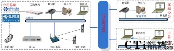 此方案適用于具有“移動(dòng)辦公、頻繁出差、家庭辦公”需求的企業(yè)。系統(tǒng)要求企業(yè)內(nèi)部部署好數(shù)據(jù)網(wǎng)絡(luò),如果采用模擬終端,則企業(yè)的各個(gè)辦公點(diǎn)需要先將網(wǎng)絡(luò)線路和電話線路部署到位。如果需要應(yīng)用WIFI終端,則需要部署WIFI網(wǎng)絡(luò)。