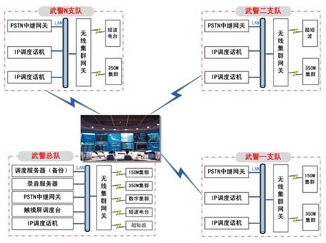 1)融合現(xiàn)有通信終端:可把系統(tǒng)內(nèi)部現(xiàn)有各種常規(guī)對講、數(shù)字集群、短波/超短波電臺等通信系統(tǒng)融合到多媒體調(diào)度平臺里互聯(lián)互通,由武警總隊(duì)調(diào)度臺進(jìn)行統(tǒng)一指揮調(diào)度。