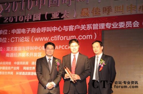 CTI論壇(ctiforum)10月14日消息(記者 潘婷婷):由中國(guó)電子商會(huì)呼叫中心與客戶關(guān)系管理專業(yè)委員會(huì)(CNCCA)主辦,CTI論壇承辦的2010中國(guó)呼叫中心產(chǎn)業(yè)峰會(huì)暨中國(guó)最佳呼叫中心頒獎(jiǎng)典禮于2010年9月28日在北京富力萬(wàn)麗酒店隆重舉行。本次大會(huì)吸引了來(lái)自全亞洲乃至世界范圍內(nèi)的權(quán)威專家學(xué)者、專業(yè)IT廠商以及金融、電信、政府、制造、電子商務(wù)、物流及零售、外包服務(wù)等行業(yè)中的領(lǐng)袖及專業(yè)人士,是亞太地區(qū)最大規(guī)模的呼叫中心及客戶關(guān)系管理領(lǐng)域的專業(yè)盛會(huì)。