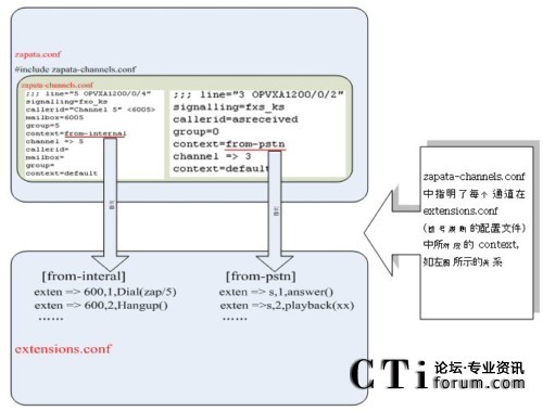 zapata.conf , zapata-channels.conf, extensions.conf 三者的關系圖: