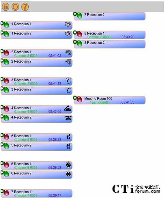 分別撥通八部電話到電話會議,這里撥打121,然后系統(tǒng)提示密碼,這里輸入123456,最后系統(tǒng)提示輸入會議房間號,這里是900。成功撥入后,如果你是第一個進入會議的人,系統(tǒng)會提示你是第一個人,然后播放音樂,直到下一位人到來,音樂停止。接下來的人成功撥入會議后,會聽到一小段系統(tǒng)音樂,然后聽到會議。