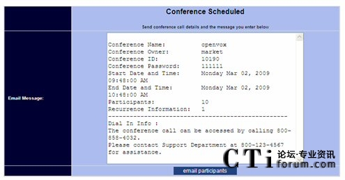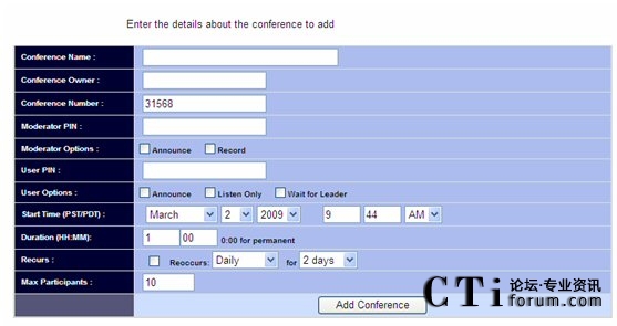 設定會議基本信息后,點擊下面的Add Conference button,頁面如下: