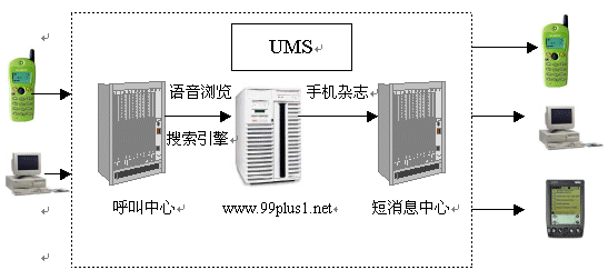 “99+1”統(tǒng)一消息網(wǎng)(以下簡稱“99+1”)是基于統(tǒng)一消息服務(wù)(UMS)平臺,應(yīng)用呼叫中心服務(wù)方式,針對移動用戶,以“99+1”網(wǎng)站為中心服務(wù)渠道,融合了先進(jìn)的語音合成和語音識別技術(shù),充分實(shí)現(xiàn)了話音、數(shù)據(jù)、短消息等全方位服務(wù)方式的綜合信息服務(wù)網(wǎng)絡(luò)。