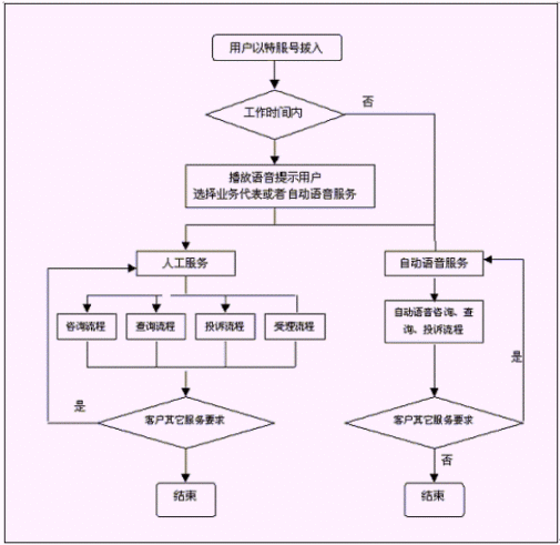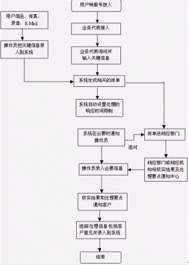客戶也可以選擇自動(dòng)語(yǔ)音服務(wù)方式,根據(jù)系統(tǒng)的語(yǔ)音提示輸入按鍵,選擇類別,將自己所需要的服務(wù)要求以及自己的聯(lián)系方式信息以留言錄音的方式保存在系統(tǒng)中。系統(tǒng)同時(shí)還支持自動(dòng)傳真方式,客戶可以通過傳真機(jī)進(jìn)入本系統(tǒng),通過按鍵選擇傳真方式,將所需要的服務(wù)要求等的文本內(nèi)容傳真給系統(tǒng),系統(tǒng)自動(dòng)接受并存入數(shù)據(jù)庫(kù)。