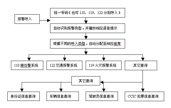 本方案所確立的110、119、122接處警模式是"集中接警、自動分流處警"。