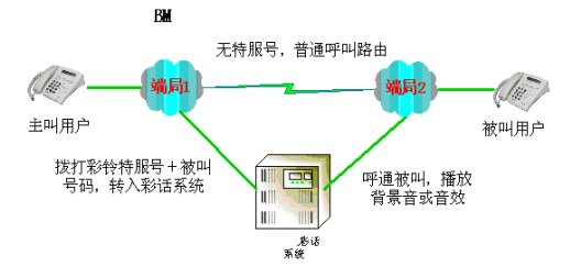直接撥打?qū)Ψ降奶柎a,自動啟動彩話業(yè)務。(要求電信運營商的智能網(wǎng)支持)。