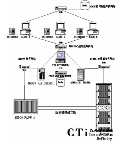 根據(jù)客服系統(tǒng)的容量,坐席多特點(diǎn),一般都采用國外品牌交換機(jī)做為接入設(shè)備,用HXD09設(shè)備作FAX或IVR系統(tǒng)。客服的業(yè)務(wù)主要為語音和傳真。HXD09系統(tǒng)在傳真和語音處理處理上在國內(nèi)產(chǎn)品的技術(shù)和價(jià)格上都有巨大優(yōu)勢。
