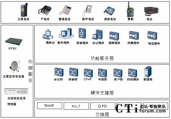 C網(wǎng)、G網(wǎng)、3G、PSTN網(wǎng)、VOIP網(wǎng)、衛(wèi)星電話、數(shù)字集群系統(tǒng)及短波電臺、超短波電臺及各頻段對講機等無線設(shè)備互聯(lián)互通。