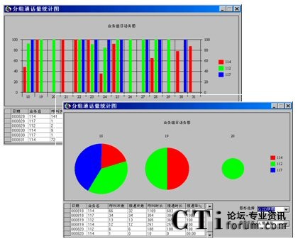 多種類(lèi)型的統(tǒng)計(jì)報(bào)表和圖形,可全方位掌握系統(tǒng)的運(yùn)行情況,為決策提供依據(jù)。如:可分別按業(yè)務(wù)組、座席、線路統(tǒng)計(jì)日、月話務(wù)量、接通率、丟失率、等待比例等進(jìn)行統(tǒng)計(jì)報(bào)表。