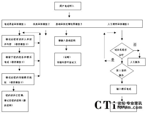 投訴人通過(guò)電話撥號(hào),進(jìn)入熱線系統(tǒng),在完成雙向交流后,系統(tǒng)自動(dòng)生成隨機(jī)專(zhuān)用密碼,告知投訴人。通過(guò)該密碼,投訴人可以隨時(shí)通過(guò)電話查詢受理部門(mén)對(duì)其投訴的受理反饋情況,受理職能部門(mén)可將受理反饋情況通過(guò)錄音及時(shí)提供給投訴人。