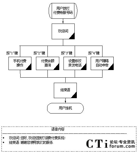 圖:IVR的語音付費熱線系統(tǒng)流程圖