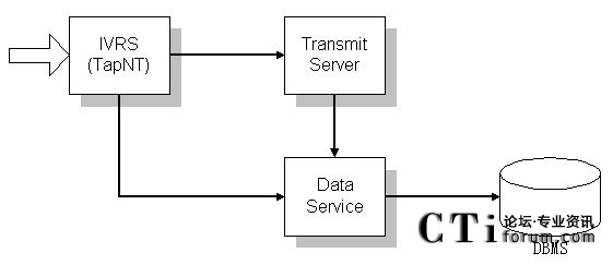 后臺程序使用Data Service 作為數(shù)據(jù)庫中間插件,TapNt(IVR)負責運行流程。TapNt(IVR)查詢數(shù)據(jù)要通過Data Service來進行。這項設(shè)置的目的在于使數(shù)據(jù)插件得到充分利用。當話務(wù)量增多時,可以多開幾個Data