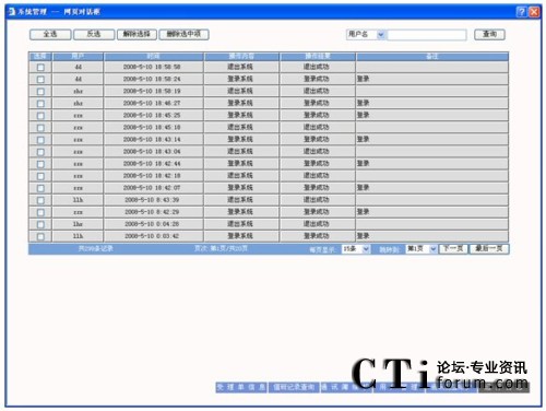 查詢:可以根據(jù)用戶名、時(shí)間、操作和操作結(jié)果為條件進(jìn)行查詢,先選擇要查詢的字段,然后輸入查詢條件,點(diǎn)擊“查詢”按鈕查詢需要的結(jié)果。