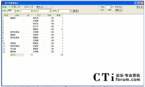 在進(jìn)行客戶檔案查詢的過程中,要特別注意前面帶復(fù)選框(即小正方形框)的這些查詢條件,比如:登記時間、區(qū)域、品種、員工,在進(jìn)行這些條件查詢的時候,一定點(diǎn)擊一下復(fù)選框(即打上對勾),才能進(jìn)行有效地查詢,否則該查詢條件無效。