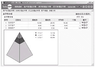 TurboCRM系統(tǒng)中的客戶價值金字塔,支持對分析結(jié)果中呈現(xiàn)的某個價值區(qū)間的客戶群進(jìn)行共性特征的抽象和提煉,幫助企業(yè)決策人發(fā)現(xiàn)重要客戶之間的共性,從而有助于尋找和挖掘最有價值的客戶(如表4、表5所示)。這一功能可以將零散的數(shù)據(jù)轉(zhuǎn)化為知識,迅速地為企業(yè)決策人提供有效幫助。