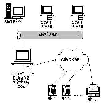 現(xiàn)有醫(yī)院的觸摸屏式導航系統(tǒng)只能局限到醫(yī)院內(nèi)部,如要內(nèi)外結(jié)合,不論是效益或影響力上,都將是很可觀的。HaKeySender醫(yī)院綜合信息電話導航系統(tǒng)正是基于這種考慮,利用現(xiàn)有比較發(fā)達的電話網(wǎng),跟蹤和吸收發(fā)達國家的先進技術(shù),采用了計算機網(wǎng)絡(luò)技術(shù),數(shù)字信號處理技術(shù)以及多媒體技術(shù),開發(fā)出的智能HaKeySender醫(yī)院綜合信息電話導航系統(tǒng),為各醫(yī)療服務(wù)機構(gòu)提供了全面有效的解決方案。