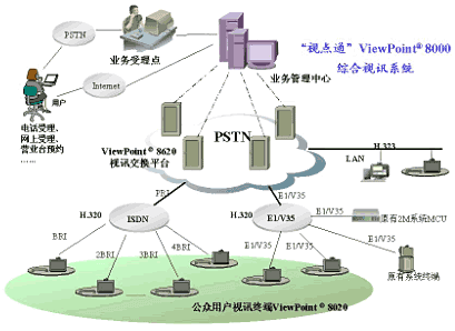 “視點(diǎn)通”ViewPoint8000綜合視訊系統(tǒng)包括:ViewPoint8620視訊交換平臺(tái)和ViewPoint8020視訊終端。
