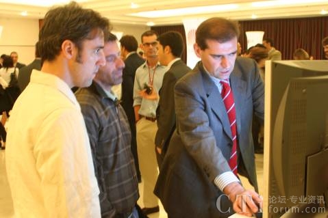 市場工程“City Widget”也是本次展會當中的一大亮點!癈ity Widget”將政府信息、政務溝通搬上了手機,從此市民與市長溝通更加便利!其主要功能包括了城市/政府黃頁、市長熱線和城市新聞。此項目涉及政府形象和施政理念,Castellar市市長Ignasi先生極為關注,興致勃勃地觀看了業(yè)務演示,連連稱贊道:“Good job!I like it very much!”,并計劃10月20號左右在Castellar市做新聞發(fā)布和業(yè)務推廣會!