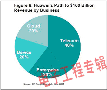 為了實(shí)現(xiàn)下一個(gè)成長(zhǎng)目標(biāo),華為將專(zhuān)注于企業(yè)、設(shè)備和云計(jì)算等領(lǐng)域中的新機(jī)會(huì)。到2020年,上述每個(gè)領(lǐng)域都將占該公司營(yíng)業(yè)收入的20%,合計(jì)占60%。其余40%營(yíng)業(yè)收入將來(lái)自該公司的傳統(tǒng)電信設(shè)備業(yè)務(wù)。
