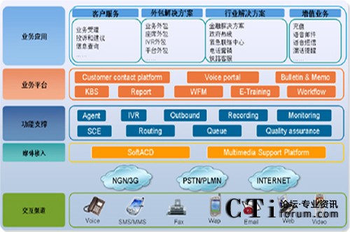 華為多媒體聯(lián)絡(luò)中心解決方案標(biāo)準(zhǔn)版采用的是基于華為NGN架構(gòu)的下一代多媒體接入設(shè)備UAP3300,寬窄帶一體化設(shè)計(jì),可接入PSTN/PLMN、NGN/3G網(wǎng)絡(luò),符合長(zhǎng)期演進(jìn)要求。單臺(tái)可支持240座席,在6U的高度內(nèi)內(nèi)置寬窄帶中繼接入和錄音、放音、傳真等媒體資源處理能力,無(wú)需外置媒體服務(wù)器和中繼網(wǎng)關(guān),并支持TTS和ASR功能。