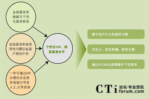 最終用戶可以提取常用業(yè)務(wù)定制自己的IVR菜單,減少語(yǔ)音提示和操作步驟,獲取服務(wù)更為準(zhǔn)確快捷,提升了業(yè)務(wù)受理效率,降低了對(duì)系統(tǒng)的占用時(shí)間。自動(dòng)業(yè)務(wù)流程隨著最終用戶對(duì)受理業(yè)務(wù)需求的變化,運(yùn)行效率也會(huì)隨之變化,系統(tǒng)將對(duì)自動(dòng)業(yè)務(wù)流程的所有節(jié)點(diǎn)進(jìn)行跟蹤分析,根據(jù)效率最大化原則對(duì)業(yè)務(wù)節(jié)點(diǎn)進(jìn)行排序和調(diào)整。這些細(xì)節(jié)的改進(jìn),可以最大限度地降低每次交互占用的時(shí)間,提升了客戶滿意度,降低了交互成本。