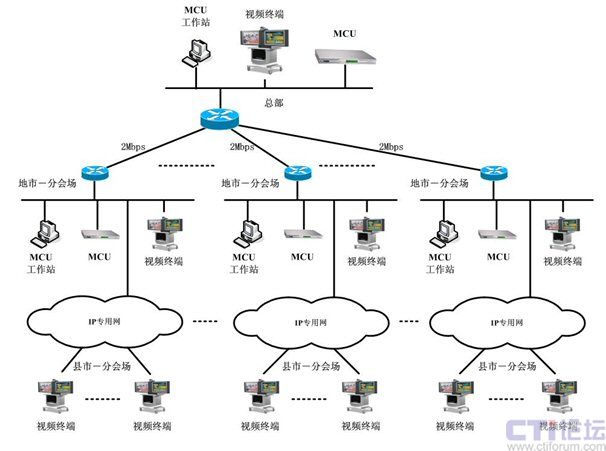 多點控制器:在上?偛坎捎肞OLYCOM公司DST MCS4200系列多點控制單元,在下面各分公司根據(jù)各自下屬中支機構(gòu)數(shù)量的不同分別配置總計17臺MCS4200系列MCU,組成一個分層級聯(lián)的全國性視頻會議網(wǎng)絡。