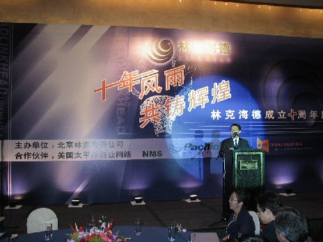 2004年6月10日,林克海德公司在昆侖飯店迎來了十年華誕,林克海德的新朋老友歡聚一堂,齊唱同一首歌。美國NMS總裁Bob,太平洋網(wǎng)絡(luò)總裁Tony都遠(yuǎn)程趕來祝賀。在過去的十年中,林克海德見證了中國電信增值業(yè)務(wù)領(lǐng)域從無到有、從簡(jiǎn)單的語音信箱到目前斑斕多彩的彩信業(yè)務(wù)的發(fā)展歷程,被譽(yù)為國內(nèi)板卡市場(chǎng)的旗艦,F(xiàn)在隨著中國通信領(lǐng)域電信增值業(yè)務(wù)的發(fā)展,林克海德憑借語音增值業(yè)務(wù)方面的豐富經(jīng)驗(yàn),成為業(yè)內(nèi)知名的語音、傳真、數(shù)據(jù)等多媒體業(yè)務(wù)開發(fā)平臺(tái)的提供商和系統(tǒng)方案服務(wù)商,林克海德公司走進(jìn)了新的語音時(shí)代!