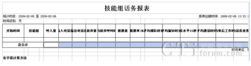 技能組話務量及服務水平報表(按業(yè)務類型分類):
