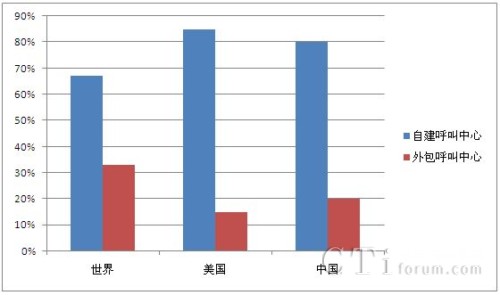 從圖中可以看出,中國的呼叫中心模式發(fā)展比例與世界,甚至與美國相比并沒多大的差別。