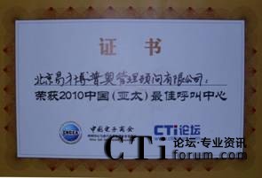 CTI論壇(ctiforum)10月14日消息(記者 潘婷婷):2010年9月28日,由中國(guó)電子商會(huì)呼叫中心與客戶關(guān)系管理專業(yè)委員會(huì)(CNCCA)主辦,國(guó)家工業(yè)和信息化部支持,CTI論壇承辦的2010中國(guó)呼叫中心產(chǎn)業(yè)峰會(huì)暨中國(guó)(亞太)最佳呼叫中心頒獎(jiǎng)典禮在北京成功召開。北京易才博普奧管理顧問有限公司通過行業(yè)推薦、評(píng)審專家小組的電話暗訪、入戶調(diào)研等多個(gè)環(huán)節(jié)的嚴(yán)格審核,憑借在人力資源外包服務(wù)領(lǐng)域的卓越表現(xiàn)從眾多企業(yè)中脫穎而出,并最終摘取“2010中國(guó)(亞太)最佳呼叫中心”桂冠。