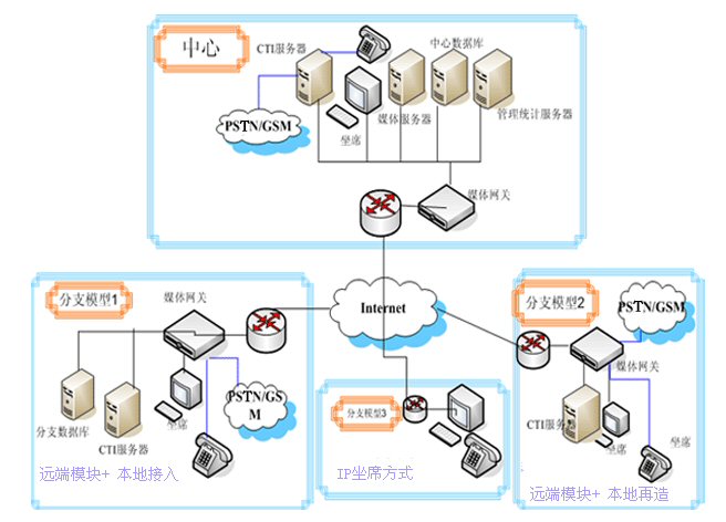 - 多種分布式、遠端坐席實現模式,滿足用戶不同分支機構的業(yè)務和規(guī)模需要。