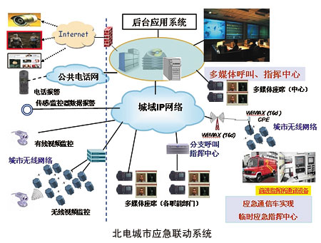 北電的城市應(yīng)急系統(tǒng)是以光傳輸系統(tǒng)以及城市無線寬帶接入網(wǎng)絡(luò)為基礎(chǔ)的,集成了應(yīng)急指揮平臺(tái)、多媒體通信平臺(tái)、地理信息平臺(tái)等多種系統(tǒng)功能于一體的綜合解決方案。
