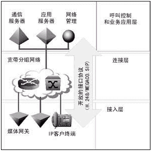 在呼叫控制和業(yè)務應用層。以軟交換技術構建的通信服務器和應用服務器提供包括呼叫控制、號碼翻譯、路由選擇、計費在內的呼叫處理功能,支持傳統(tǒng)電話業(yè)務和下一代交互式多媒體業(yè)務應用,以及開放的業(yè)務編程接口。硬件平臺也應是開放的商用平臺。