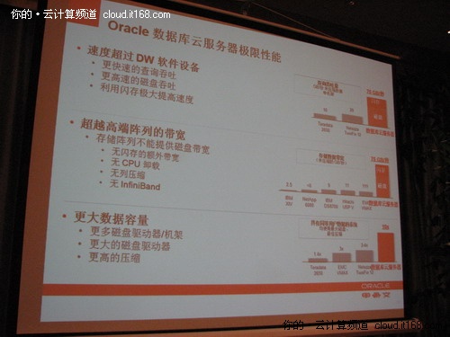 喻思成在介紹甲骨文在云計(jì)算產(chǎn)品的時(shí)候毫不掩飾對(duì)Oracle數(shù)據(jù)庫(kù)云服務(wù)器和Oracle中間件云服務(wù)器的贊譽(yù)。他說(shuō),甲骨文將這兩款產(chǎn)品稱(chēng)之為“經(jīng)過(guò)預(yù)調(diào)測(cè)的系統(tǒng)”。它們均由硬件和軟件組成,硬件和軟件能以一種優(yōu)化的方式協(xié)調(diào)一致地運(yùn)行,并以一種預(yù)集成的工作狀態(tài)提供給客戶(hù),因此具有極高的性能和效率,是數(shù)據(jù)庫(kù)的理想目標(biāo)平臺(tái),也是在中間層合并幾十或數(shù)百個(gè)應(yīng)用的理想目標(biāo)平臺(tái)。由于它們都是由甲骨文預(yù)集成和預(yù)配置的,因此也簡(jiǎn)化了部署,能減少總的硬件量并降低環(huán)境復(fù)雜性,因此對(duì)客戶(hù)而言,其總體擁有成本更低。