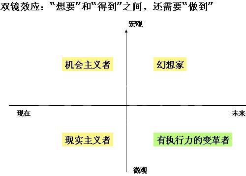 第一種右上角是“幻想家”,把目前工作的重點(diǎn)放在宏觀的角度,不斷憧憬未來,宏觀的理論滔滔不絕,只有理念無法落地實(shí)施,到頭來還是流于紙上談兵。